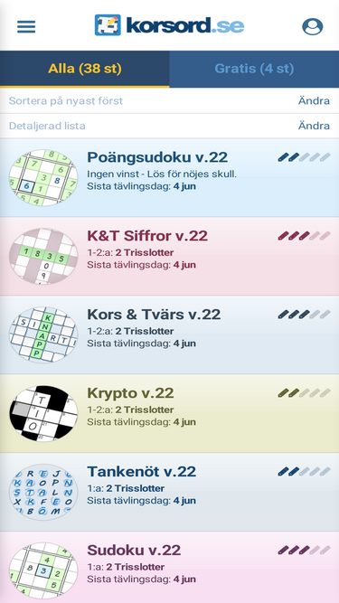 73%lös korsord, sudoku och andra ordspel på nätet i din dator eller surfplatta. tävla och vinn fina priser. korsord fyller 100 år!