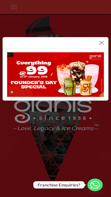 80%Bring Gianis legendary ice cream to your city Become a franchise partner and serve classic flavors with a trusted brand. Inquire now to get started.