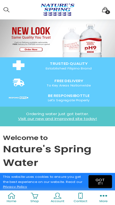 73%Nature's Spring Purified Drinking Water is a quality yet affordable brand for daily consumption of clean and safe bottled water. *Sold per box1 box/case of Nature's Spring Purified Drinking Water 500mL contains 35 bottles
