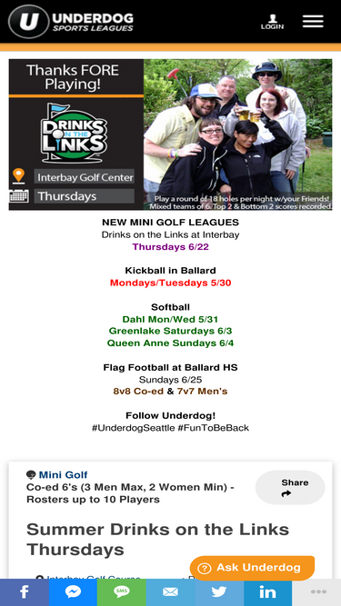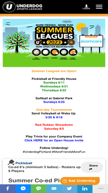 72%All upcoming and current leagues and tournaments offered by Underdog Sports Leagues Portland.