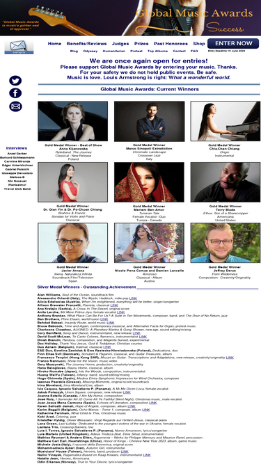 Global Music Awards is a well-known international music competition which celebrates independent musicians. Global Music Awards is widely recognized by industry insiders as giving legitimacy to highly talented artists. ‘Global Music Awards is recognized as music's golden seal of approval.’