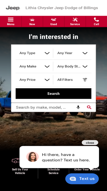 78%shop for a new jeep dodge or ram vehicle at lithia chrysler jeep dodge of billings. we carry new vehicles, used trucks, cars and suvs along with full service parts, repair and financing!