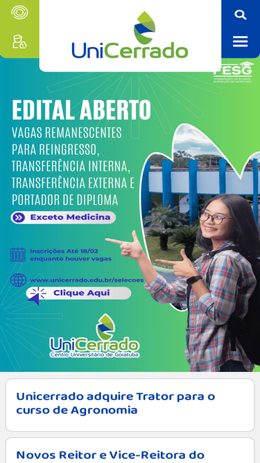 82%A UniCerrado A UniCerrado é uma instituição pública municipal mantida pela Fundação de Ensino Superior (FESG) com cobrança de mensalidade.Para o ingresso nos cursos oferecidos pela UniCerrado é necessária a aprovação no Processo Seletivo e a partir do segundo semestre de 2023, também, é possível o ingresso através da nota…