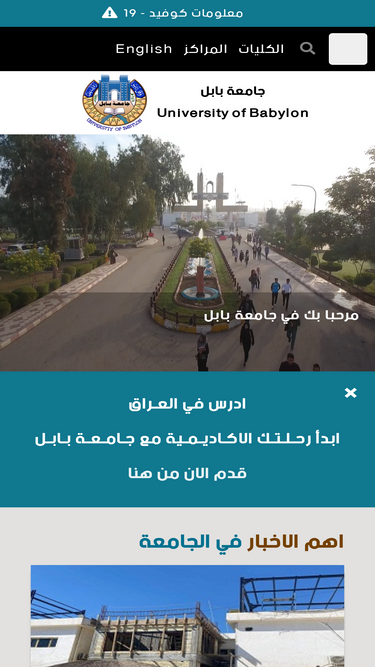 71%موقع جامعة بابل الالكتروني الرسمي. مرحبا بك في جامعة بابل من مدينة الحلة مركز محافظة بابل. جامعة بابل احد افضل واكبر الجامعات العراقية الحكومية. جامعة تابعة لوزارة التعليم العالي والبحث العلمي العراقية. ابقى على اطلاع باخر الاخبار والاحداث والنشاطات العلمية والاكاديمية والبحثية في جامعة بابل
