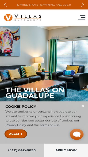 90%Welcome to The Villas on Guadalupe Apartments; stylish off-campus 1, 2, 3, 4, & 5-bedroom apartments located just steps from UT in Austin, Texas.