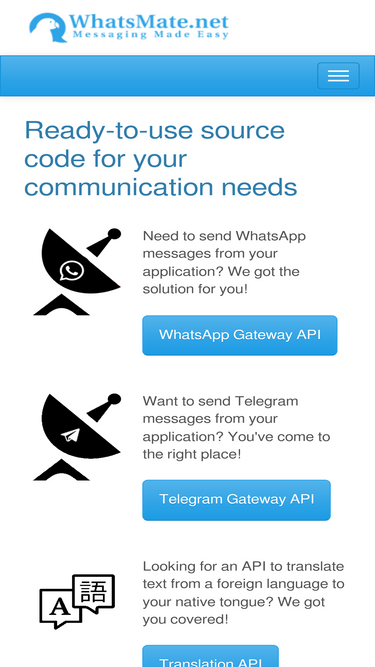 81%whatsmate provides api service for whatsapp messaging, telegram messaging and translating languages.
