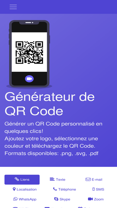 83%créer un qr code avec ce générateur de qr code en ligne. intégrer un lien, du texte, un sms, une géolocation, un email.