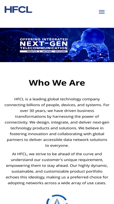79%HFCL is a leading global technology company connecting billions of people, devices, and systems. For over 30 years, we have driven business transformations by harnessing the power of connectivity. We design, integrate, and deliver next-gen technology products and solutions. We believe in fostering innovation and collaborating with global partners to deliver accessible data network solutions to everyone.