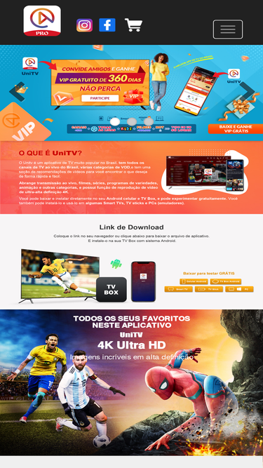 100%UniTV oferece +340 canais e +1 milhão de filmes e séries, cobrindo esportes, filmes, séries, programas de TV e tudo isso em 4K e UHD. Baixe e teste grátis por 7 dias.