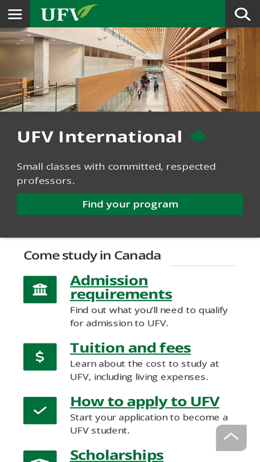 74%Learn in one of the best universities in Canada: enjoy small class sizes and dedicated professors at the University of the Fraser Valley, British Columbia, Canada.