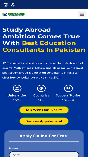 77%With 10+ years of experience, 12 Consultants are among top study abroad & education consultants in Pakistan. Achieve study goals with free consultancy.