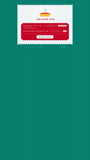 94%upload pie is a simple no fuss tool for temporarily sharing images and text files, allowing you to view the files within a browser window for a chosen amount of time.