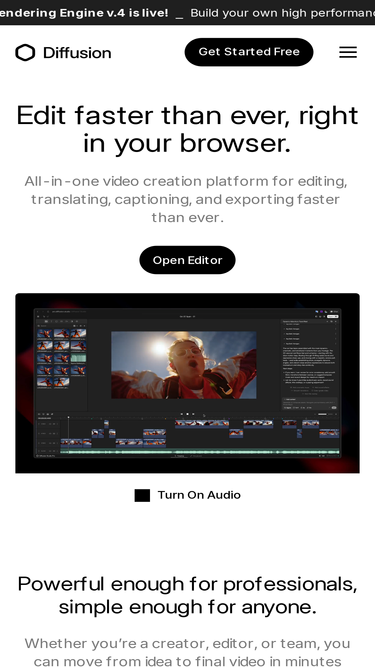 86%Get the latest updates from Diffusion Studio. Discover new features and improvements designed to make your video editing faster, smarter, and more powerful.