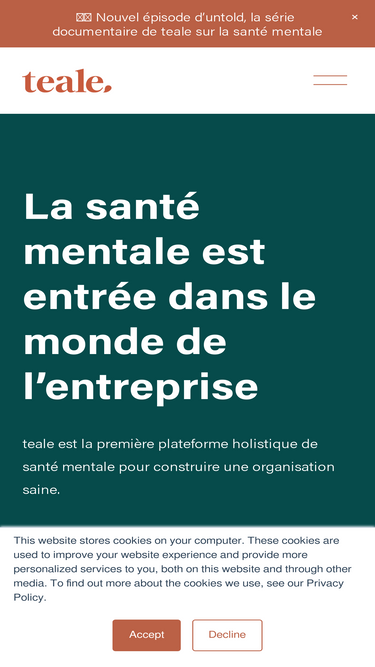 80%30% des collaborateurs ont déjà pensé à quitter leur entreprise pour préserver leur Santé Mentale. Avec teale, vos équipes en prennent soin, de manière préventive et positive.