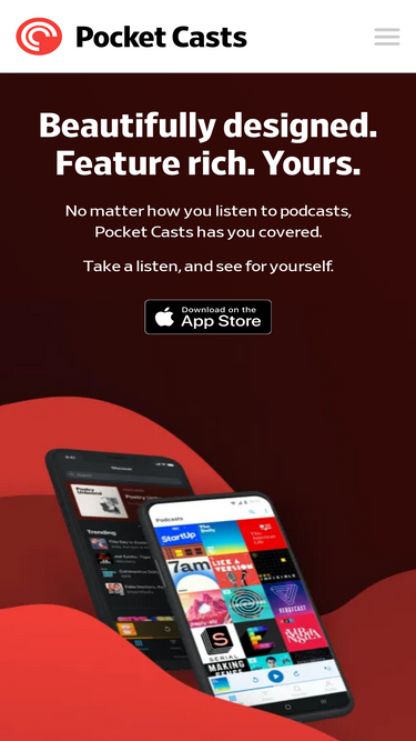 100%Pocket Casts provides next-level listening, search and discovery tools. Find your next obsession with our hand curated podcast recommendations, and seamlessly enjoy and manage all your shows no matter which platform you're on.