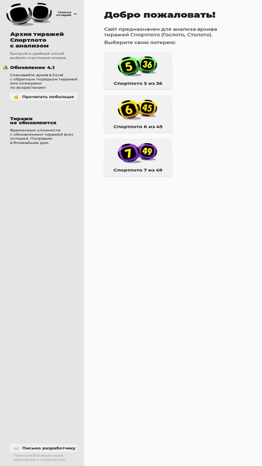 лотостат.ру: архивы тиражей, результаты, анализ лото, 5 из 36, 6 из 45, топ-3, рапидо, 7 из 49, euromillions, powerball, megamillions, uk lottery,