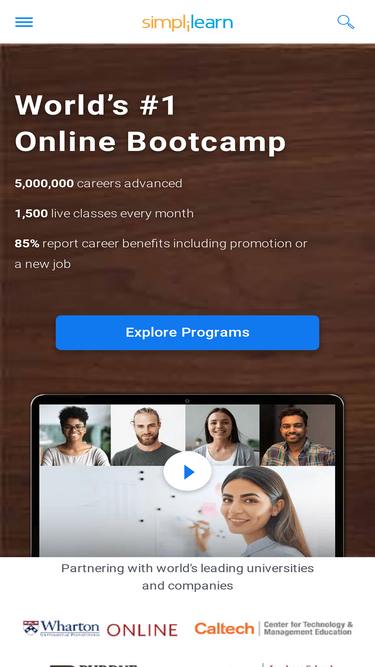 Simplilearn is the popular online Bootcamp & online courses learning platform that offers the industry's best PGPs, Master's, and Live Training. Start upskilling!