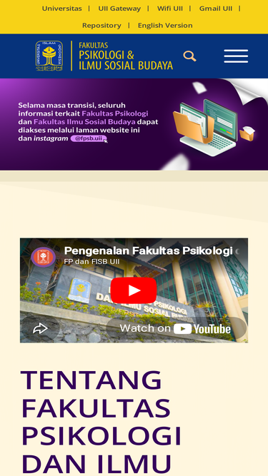 87%FakuFakultas Psikologi dan Ilmu Sosial Budaya (FPSB) Universitas Islam Indonesia (UII) adalah kampus swasta tertua di indonesia