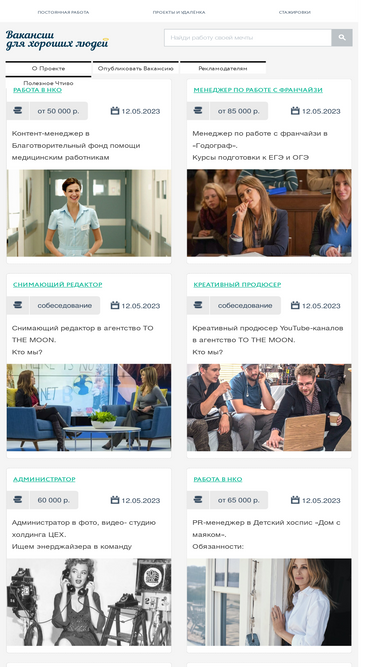 Здесь эффективно искать сотрудников в Москве и Санкт-Петербурге. Основные сферы: СМИ, Медиа, Дизайн, Креатив, Маркетинг, Реклама и пиар, Творчество, Архитектура, Интернет-технологии. Наши постоянные клиенты: Яндекс, ВКонтакте, РБК, ТАСС, Первый канал, НТВ, Авторадио, МегаФон, Альфа-Банк, Музей русского импрессионизма, Киностудия им. Горького, Театр Наций и др. От благотворительных организаций вакансии публикуем БЕСПЛАТНО! Это наш вклад. ПРАЙС 2025 […]