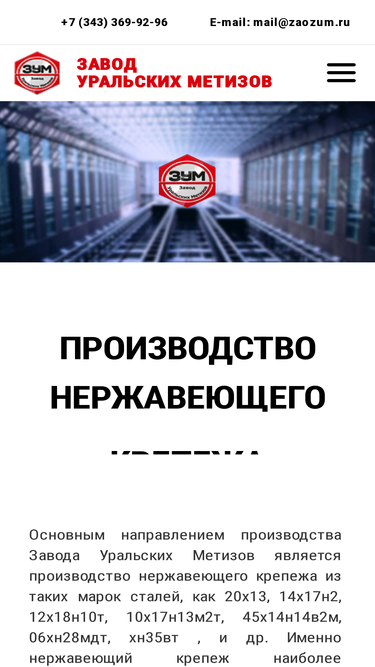 84%завод уральских метизов производит нержавеющий крепеж, нержавеющие фланцы, метизы и элементы трубопроводов. изготовление продукции по индивидуальным чертежам. большой ассортимент готовой продукции на складе.