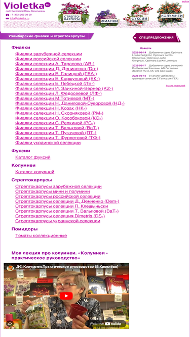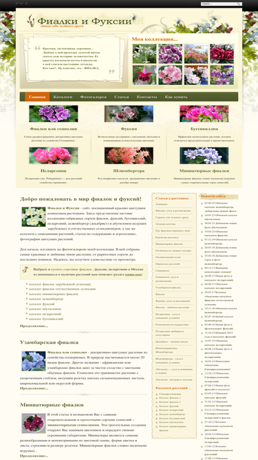 91%фиалки и фуксии - сайт, посвященный красиво цветущим комнатным растениям. представлены частные коллекции гибридных сортов фиалок, фуксий, шлюмбергер, абутилонов и пеларгоний ведущих зарубежных и отечественных селекционеров. все это можно посмотреть и при желании купить в москве или с доставкой почтой по всей россии.