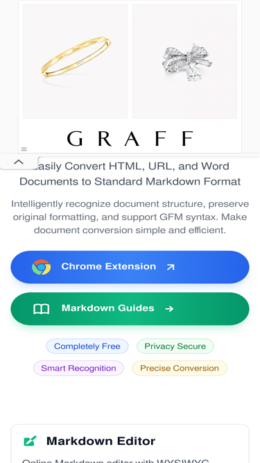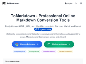 ToMarkdown is a professional Markdown format conversion toolset. Supports HTML, URL, Word, PDF, etc. to Markdown, intelligent (AI) conversion preserves the original formatting, completely free to use.