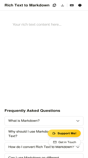 79%Easily Convert any Rich Text to Markdown. Paste or write your rich formatted text and then copy to clipboard or download as md file.
