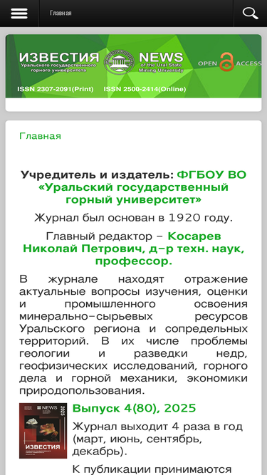 77%в журнале находят отражение актуальные вопросы изучения, оценки и промышленного освоения минерально-сырьевых ресурсов уральского региона и сопредельных территорий. в их числе проблемы геологии и разведки недр, геофизических исследований, горного дела и горной механики, экономики природопользования. к публикации принимаются статьи на русском и английском языках.