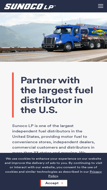 76%sunoco lp is one of the largest independent fuel distributors in the united states. learn more about our solutions for fuel supply, fuel retail and more.