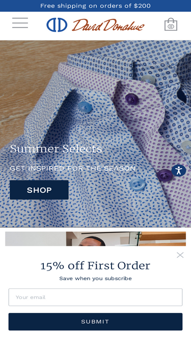 86%Specializing in dress shirts that stand the test of time and live up to our reputation of quality. Founded in 1972, David Donahue supports the hustle for success and tailoring the wardrobe to achieve it. - Free Shipping on orders of $200.
