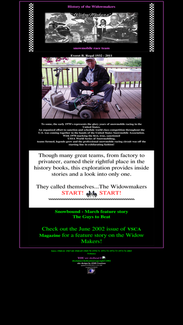 87%history of the widow makers snowmobile race team. ev regal, ken young, fay parmley, richie sharp, chip elwood. arctic cat, ski-doo, polaris.