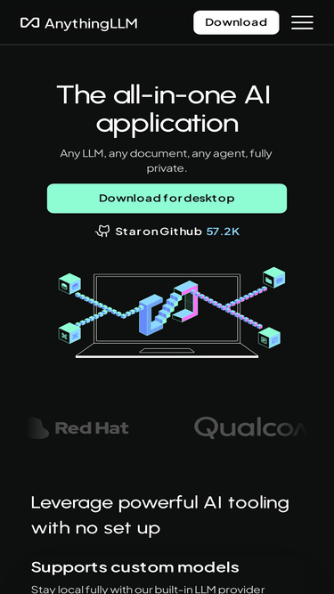 74%AnythingLLM is the AI application you've been seeking. Use any LLM to chat with your documents, enhance your productivity, and run the latest state-of-the-art LLMs completely privately with no technical setup.