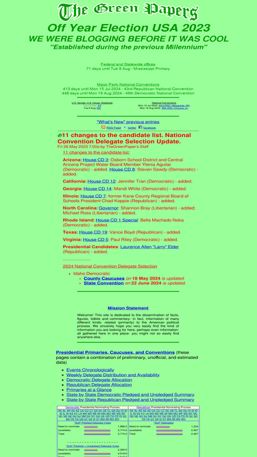 100%the green papers: united states presidential election 2024. facts, figures, and tidbits about the general election, primaries, caucuses, delegate selection plan, state and national political conventions, and candidates.
