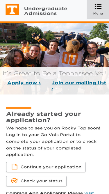 87%Begin your journey at the University of Tennessee, Knoxville. Learn more about how to apply and the requirements to join the Volunteer family!