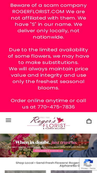 97%Roger's Florist Alpharetta is a local florist with same-day flower delivery in Snellville GA. Their flower shop has been catering to the city of Alpharetta for 60 years, designing floral arrangements for a broad range of events.