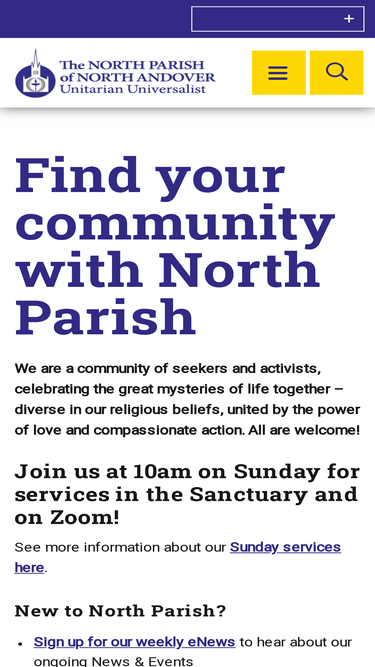 88%North Parish is a welcoming, regional Unitarian Universalist Church in North Andover MA that promotes love, compassion and interdependence.