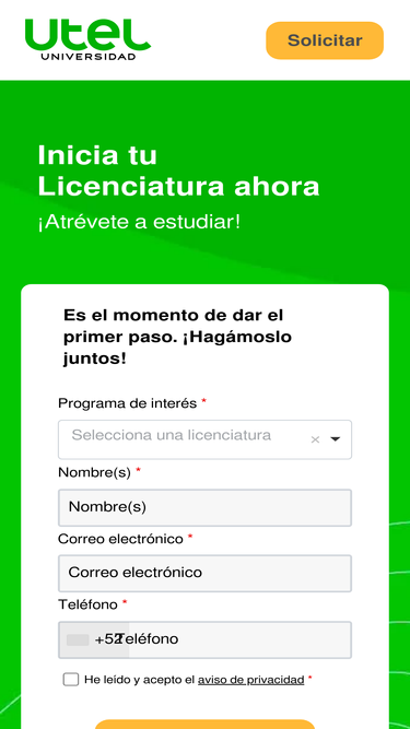 80%¿Quieres ponerte en contacto con nosotros? Ingresa a esta página, accede a nuestro apartado de admisiones y déjanos tus datos. ¡Solo haz clic aquí!