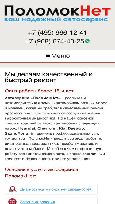 ПоломокНет - автосервис на Преображенской площади. К Вашим услугам диагностика, ремонт и техобслуживание автомобилей Hyundai, Daewoo, Kia, Chevrolet.