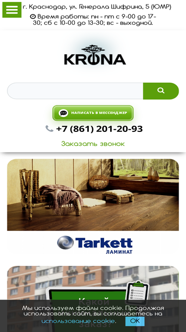 100%продажа напольных покрытий: ковролин, ковровая плитка, коммерческий линолеум, полукоммерческий линолеум, антистатический линолеум, спортивный линолеум, натуральный линолеум, пвх плитка, ламинат, паркетная доска, спортивные покрытия, искусственная трава, резиновые покрытия, сухие строительные смеси, средства для очистки и защиты напольных покрытий от ведущих производителей: tarkett, nora, classen, kronostar, kronospan, egger, kaindl, quick step, everlast, sintelon, эния, balta, калинка, desso, forbo, uzin, dr. schutz и rz. напольные покрытия доставляются бесплатно для жителей городов: краснодар, сочи, новороссийск, геленджик, анапа, туапсе, крымск и других городов краснодарского края и республики адыгея.