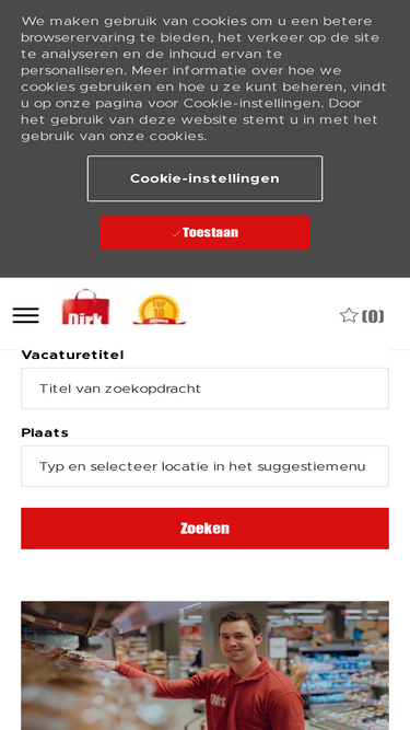 85%Wil je werken bij Dirk? Bekijk onze vacatures en solliciteer makkelijk online. Ons doel is dat iedereen elke dag met plezier naar het werk gaat en dit enthousiasme overbrengt op de klanten, kan jij je daarin vinden? Categorieën: bijbaan, starter, (winkel)management en vakspecialisten.