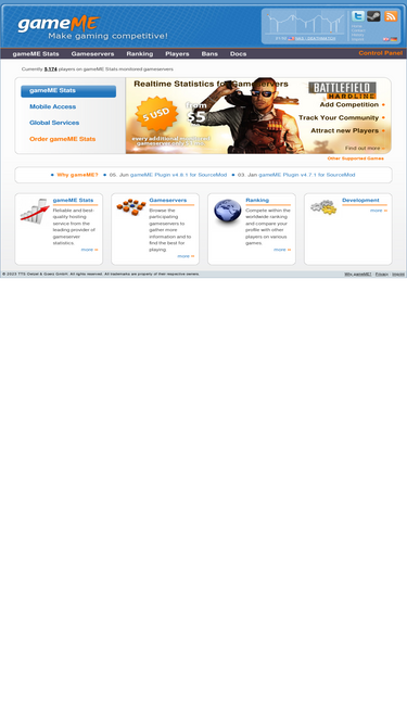 83%gameme stats offers realtime stats for gameservers for counter-strike, team fortress, battlefield, day of defeat, left 4 dead and many half-life 1/2 mods!