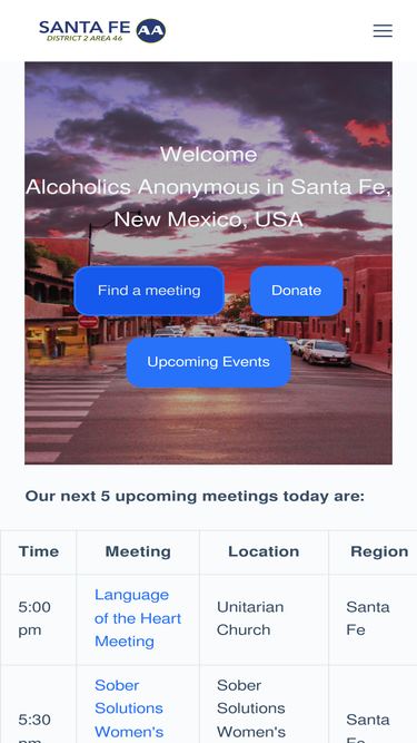 100%alcoholism treatment. home page of alcoholics anonymous in the santa fe, new mexico area. includes a directory of aa meeting times and places %