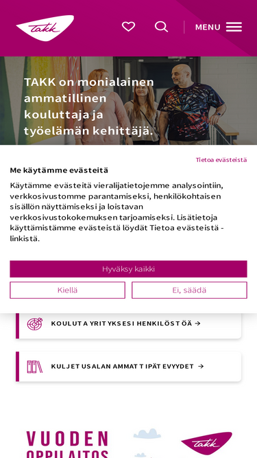 81%Jos haluat opiskella ensimmäiseen ammattiisi, suorittaa kesken jääneet opinnot loppuun, suunnittelet lisäosaamisen tai uusien taitojen hankkimista tai mietit alanvaihtoa, olet oikeassa paikassa. Järjestämme koulutusta aikuisille ja nuorille. Löydät tietoa myös siitä, miksi lukion tai armeijan jälkeen kannattaa harkita ammatillisia opintoja.