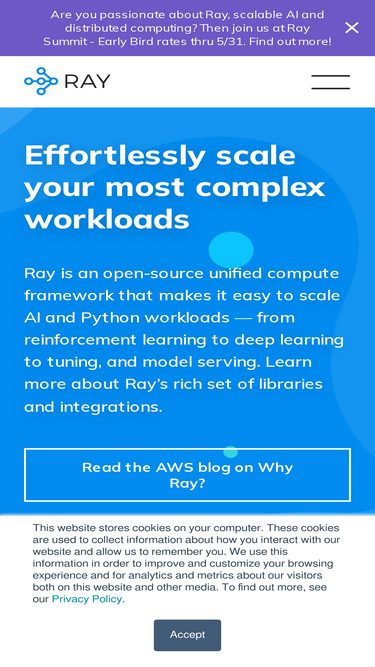 80%Ray is an open source framework for managing, executing, and optimizing compute needs. Unify AI workloads with Ray by Anyscale. Try it for free today.