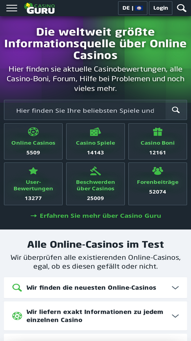 91%Die weltweit komplexeste und unabhängigste Online Casino Ressource. Objektive und sachliche Informationen über Online Glücksspiele, die Sie dabei unterstützen, die richtigen Entscheidungen zu treffen.