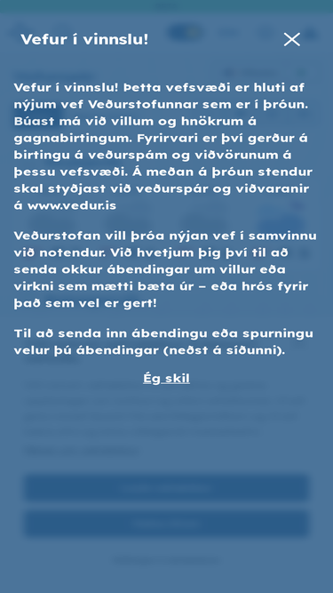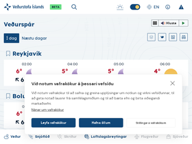 87%Veðurstofan birtir upplýsingar um veðurspár, viðvaranir vegna veður og veðurathuganir fyrir almenning og viðbragðsaðila.