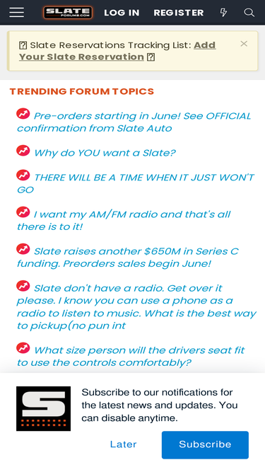 24%Slate Forums is your top source for Slate Auto EV pickup truck & SUV - forum, news, price, specs, review, classifieds, photos/videos. Come join other enthusiasts & owners!