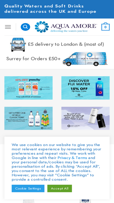 73%London and North Surrey We use our own vehicles and trained drivers for orders upwards of £50.00. You’ll receive an email with a delivery window of two hours, the evening of the working day prior to your delivery. Orders under £50: £9.99 via UPS Orders £50 to <£100: £9.99 via UPS[default] OR £14.99 via Aqua Amore Or