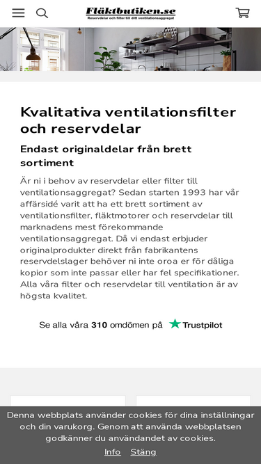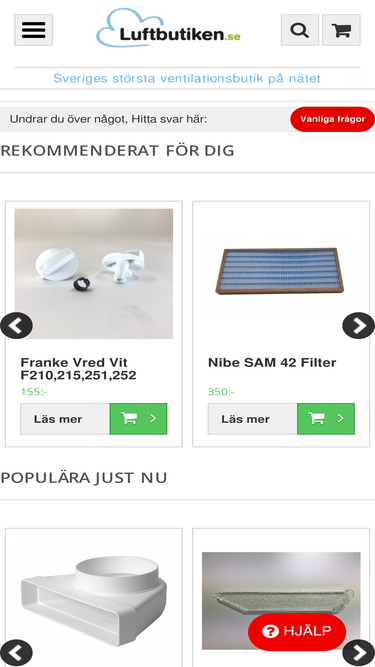 95%Vi på Ventilationsexpressen är en ventilationsbutik som säljer ventilationsprodukter som FTX-aggregat med värmeåtervinning, filter, fläktar och mycket mer!