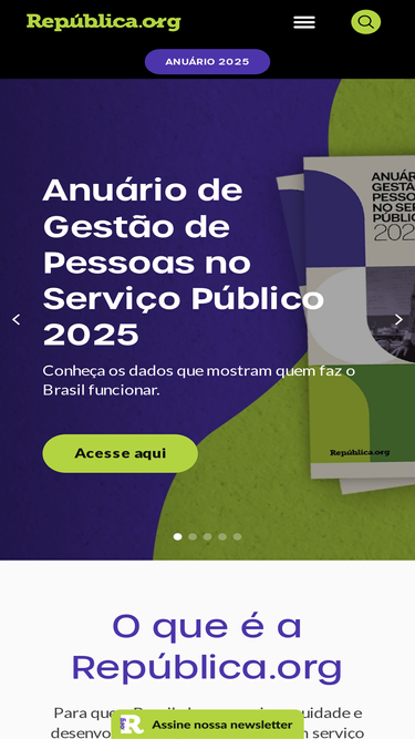 75%Para que o Brasil alcance maior equidade e desenvolvimento, é essencial ter um serviço público mais presente, competente e respeitado - cada vez mais efetivo e atrativo. Essa convicção é o pilar da República.org, uma instituição apartidária e antirracista dedicada à transformação da gestão de pessoas no serviço público do nosso país.